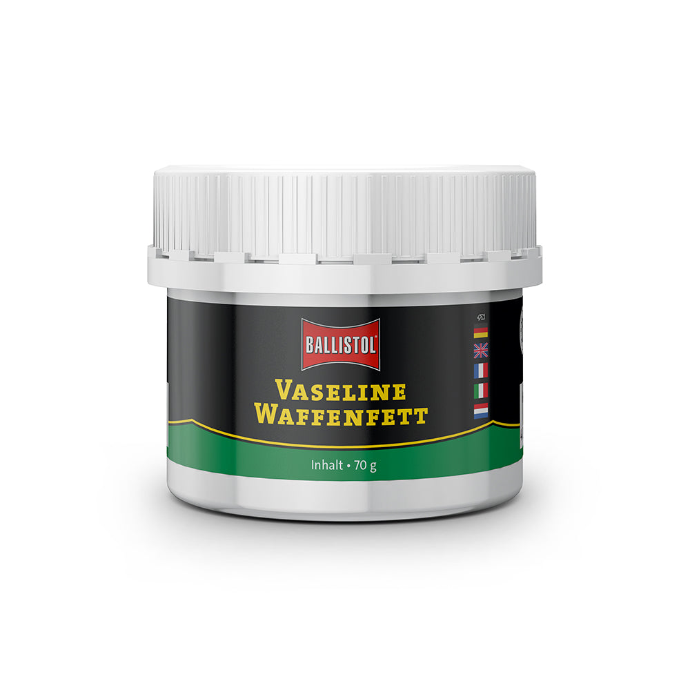 Questo grasso per armi privo di resina e acido è della più elevata qualità ed è perfettamente idoneo per la lubrificazione di parti metalliche interne ed esterne. La vaselina grasso per armi lubrifica e protegge tutte le parti metalliche, l'otturatore e le parti meccaniche. Ideale anche per l'impiego su pistole e fucili ad aria compressa: per la lubrificazione del pistone di compressione e dei meccanismi. Per l'applicazione usare secondo il caso un panno senza pelucchi o un bastoncino cotonato.