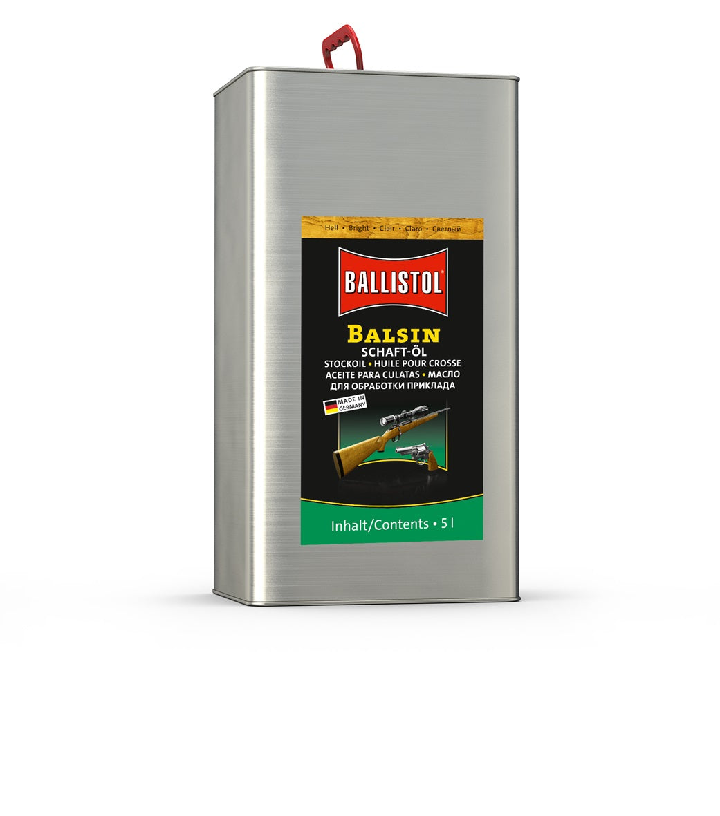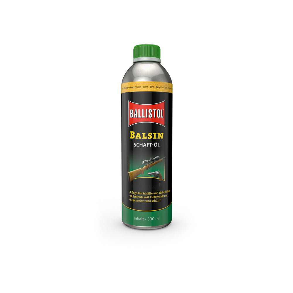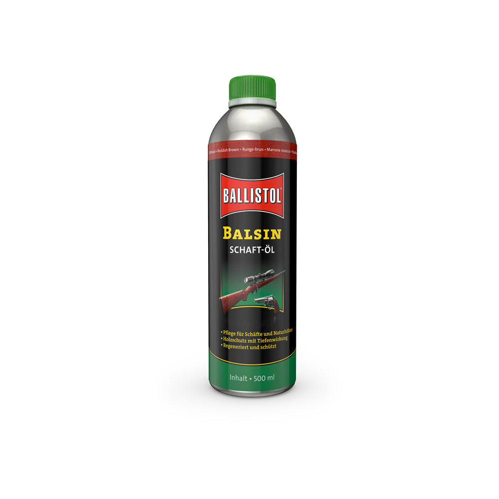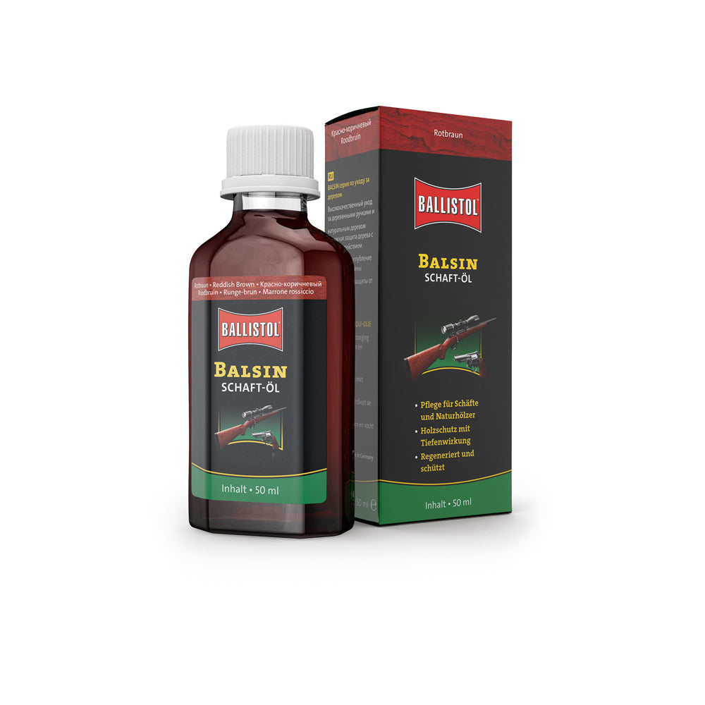 BALSIN olio per calci rende il legno del calcio; infragilito e rovinato dalle intemperie; nuovamente impermeabile e resistente agli attacchi dell'ambiente; mantenendo al tempo stesso la naturale attività respiratoria del legno. Al tempo stesso; BALSIN olio per calci rigenera la venatura; la mette in risalto e le conferisce una sfumatura leggermente più scura. L'olio per calci BALSIN è ideale per calci in legno di ogni genere ed è quindi un aiuto prezioso in mano agli armaioli e ai proprietari di armi. BALSIN olio per calci fornisce una nuova lucentezza setosa anche ai calci in legno invecchiati; infragiliti e rovinati dalle intemperie. Protegge da marcescenze e muffe; intensifica le venature e rinforza la resistenza grazie ad una speciale formula al silicone. BALSIN olio per calci è in tre colorazioni miscelabili a piacere; per creare in questo modo la corretta tonalità per ogni legno.