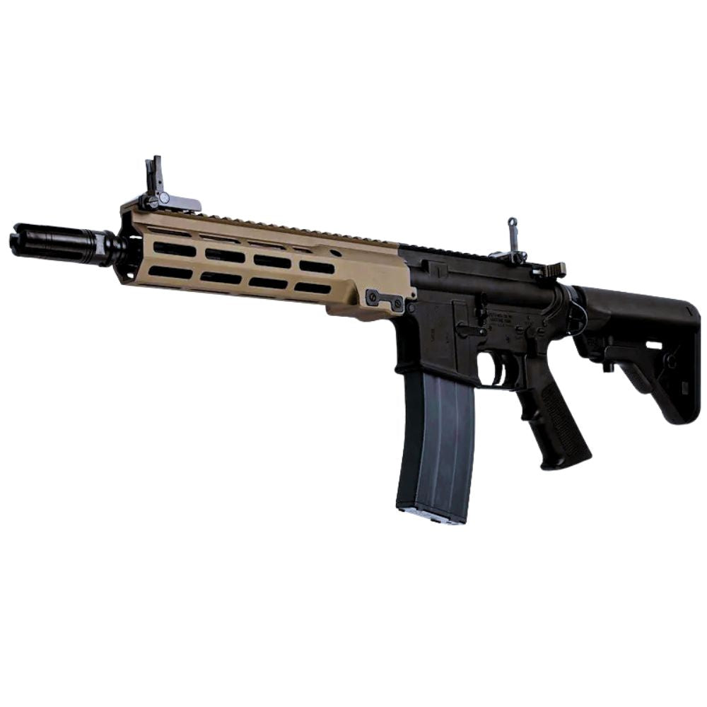 Il comparto mirino è completo di tacche di mira flip-up KAC style abbattibili, perfette per l’uso diretto o come backup per ottiche di precisione. La canna interna da 330 mm lavora in combinazione con un sistema hop-up regolabile, garantendo traiettorie stabili anche su  medie distanze.