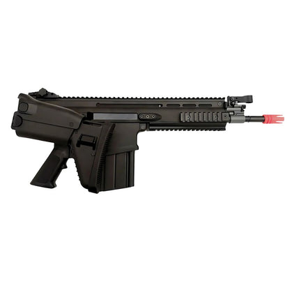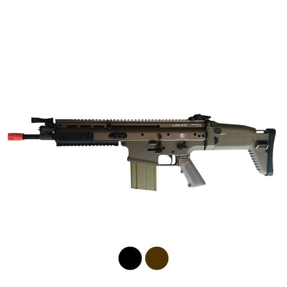 Il modello FN - SCAR-H si adatta a giocatori destrimani e mancini, grazie al selettore di tiro, lo sgancio caricatore e la leva di armamento completamente ambidestri. Il calcio pieghevole e regolabile in 6 posizioni consente di adattare perfettamente la lunghezza dell’arma alla corporatura e al tipo di missione, migliorando la maneggevolezza in spazi ristretti.