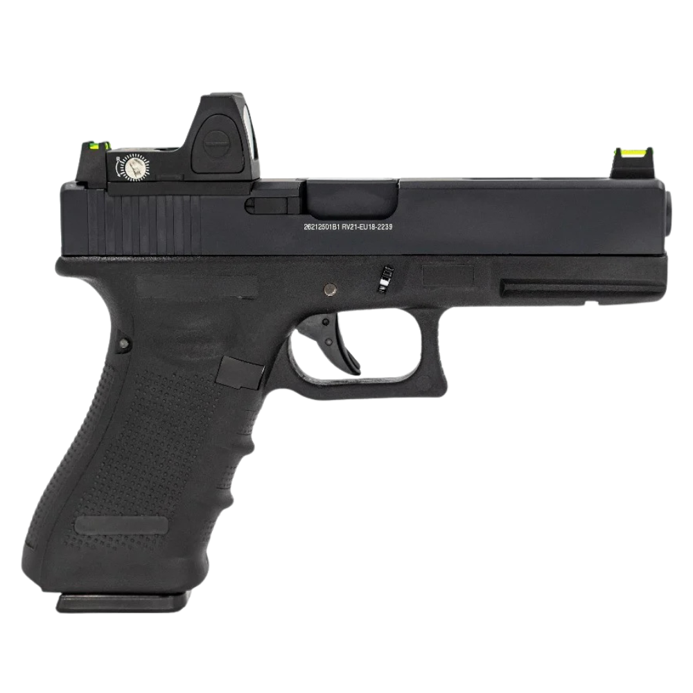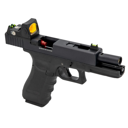 Il Red Dot montato sul carrello permette una rapida acquisizione del bersaglio in qualsiasi condizione di luce, ideale per i giocatori CQB e per gli scenari tattici. Il grilletto in stile Glock integra un sistema di sicura automatica, per un utilizzo controllato anche in movimento.