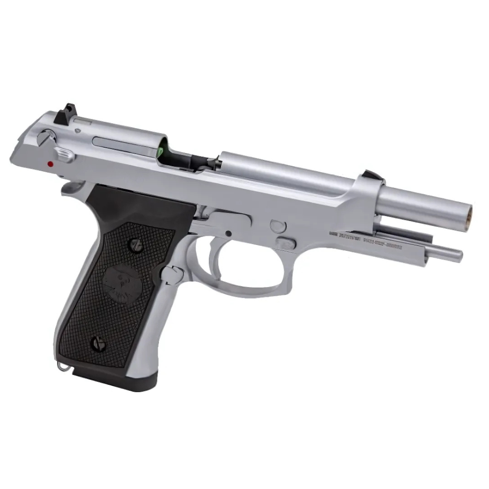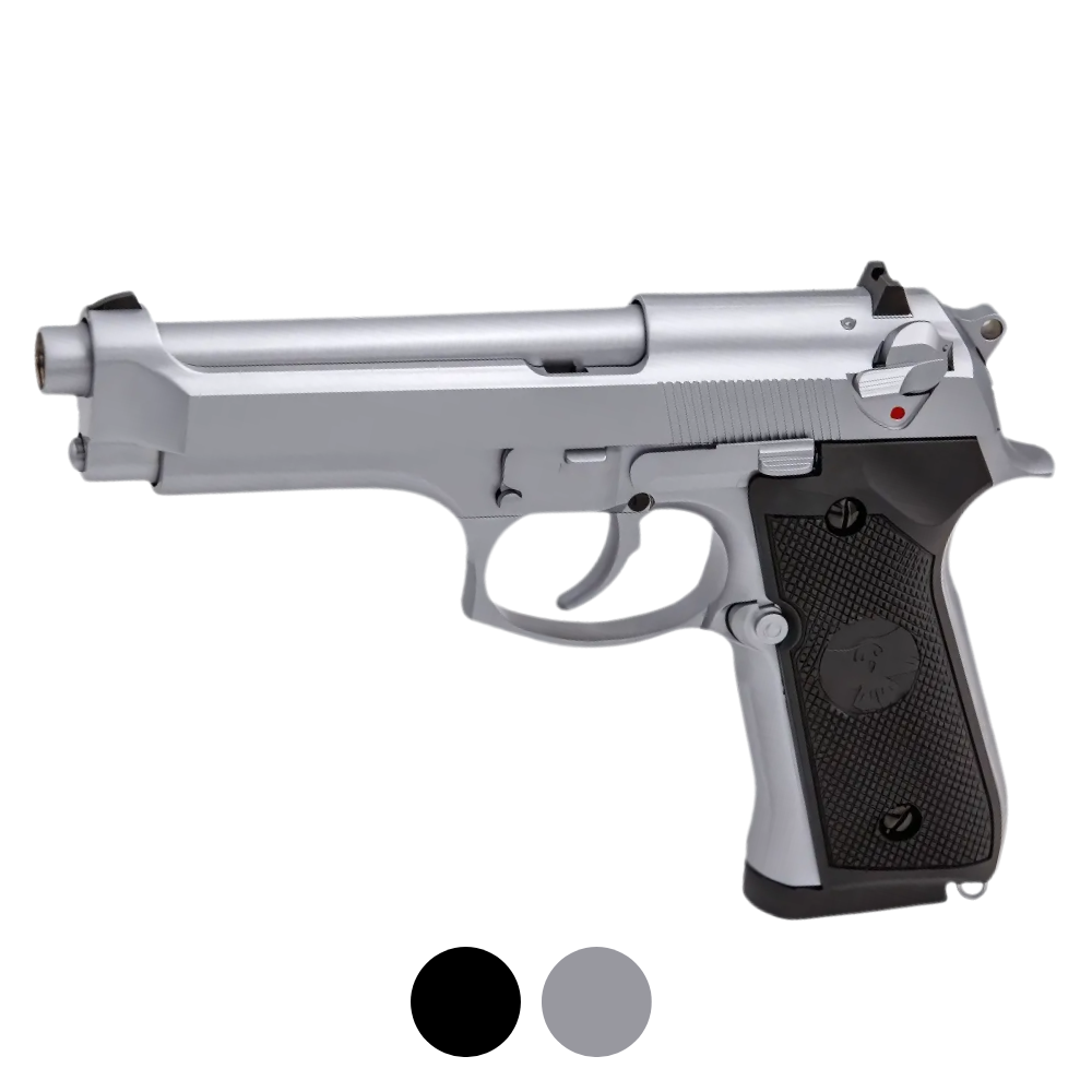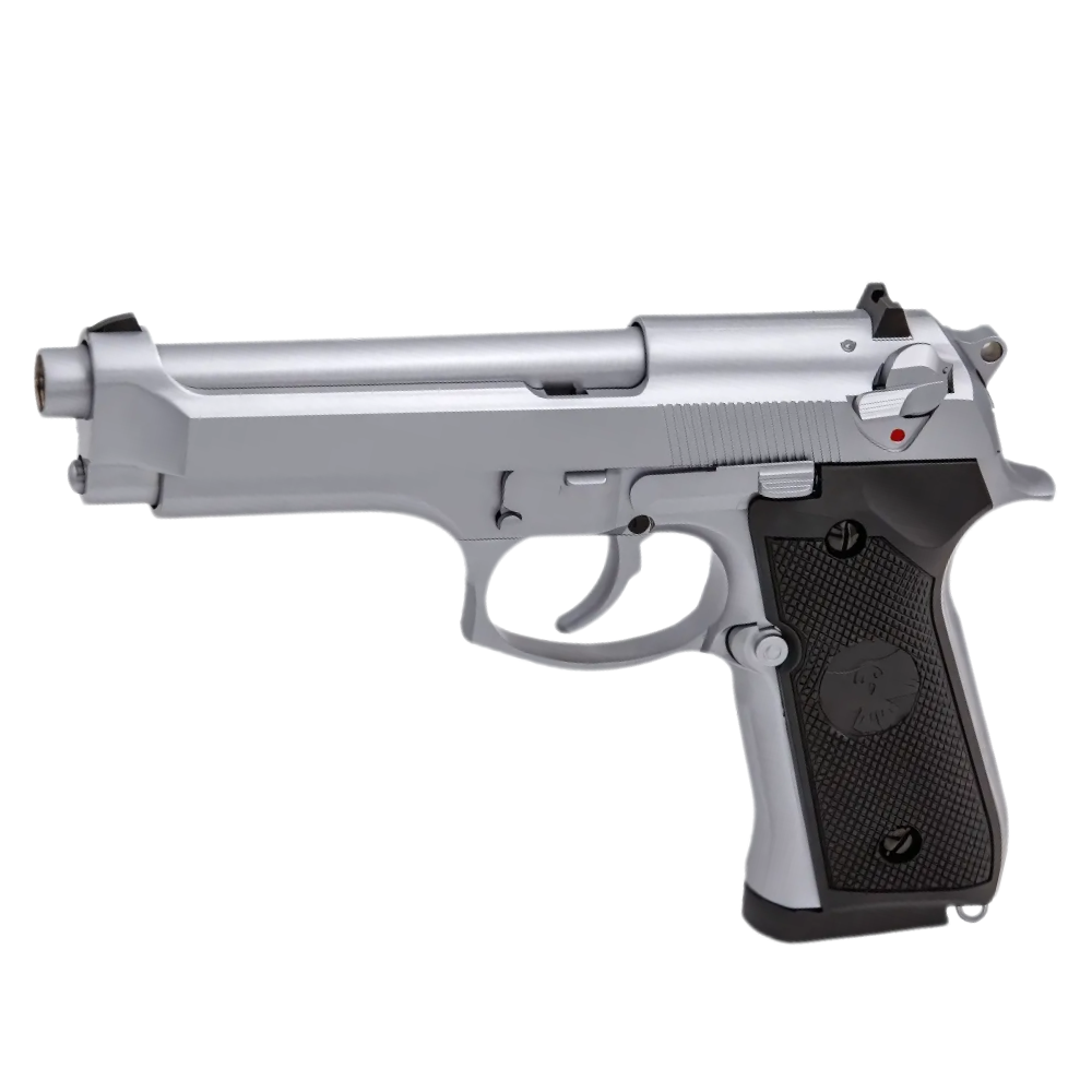 Pistola softair scarrellante che riprende le linee classiche della leggendaria Beretta M92, ma con tutta l’affidabilità e le prestazioni di una moderna replica GBB (Gas Blowback). Il design è studiato per offrirti massima precisione nei colpi, risposta rapida del carrello e un’ergonomia che ti farà sentire il controllo in ogni situazione di gioco.