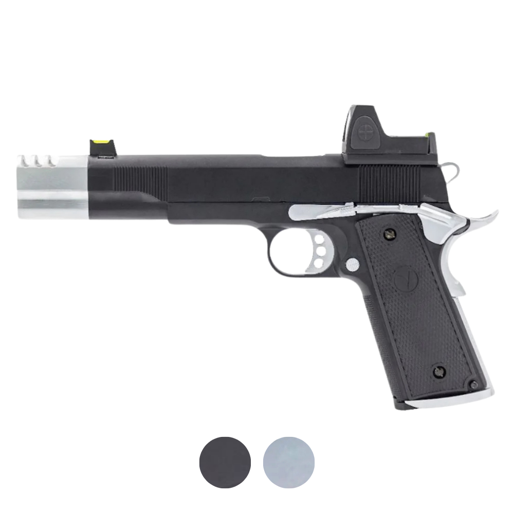 Pistola softair Vorsk VP-X replica della leggendaria 1911, reinterpretata in chiave moderna con uno stile aggressivo. Il compensatore migliora la stabilità, mentra la reattività GBB regala un rinculo deciso a ogni colpo. Il carrello è rifinito CNC e le impugnature zigrinate aumentano l'aderenza.