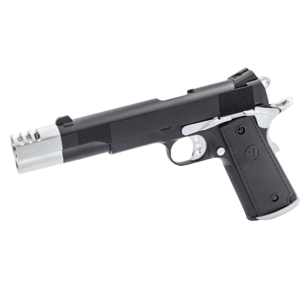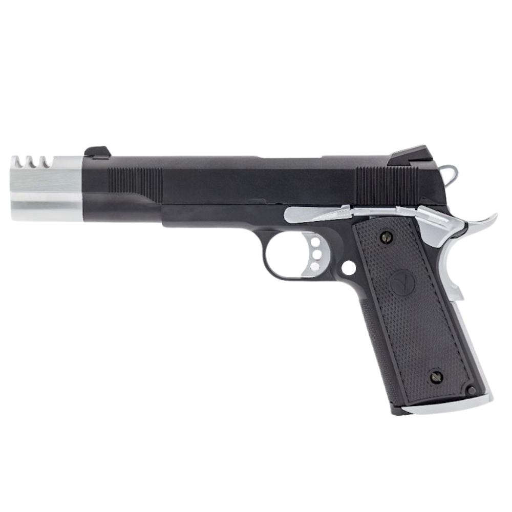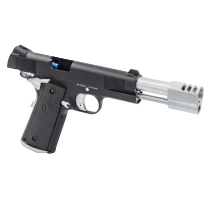 Pistola softair Vorsk VP-X replica della leggendaria 1911, reinterpretata in chiave moderna con uno stile aggressivo. Il compensatore migliora la stabilità, mentra la reattività GBB regala un rinculo deciso a ogni colpo. Il carrello è rifinito CNC e le impugnature zigrinate aumentano l'aderenza.
